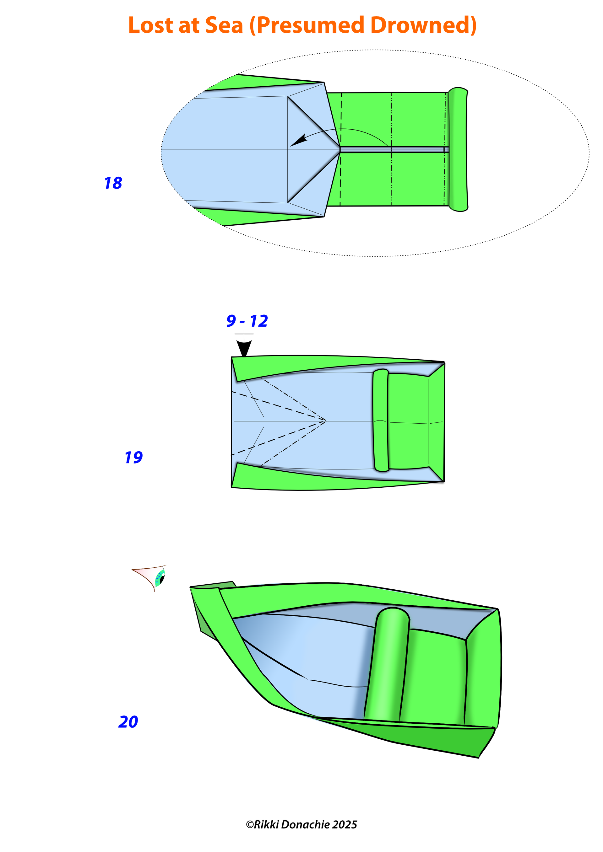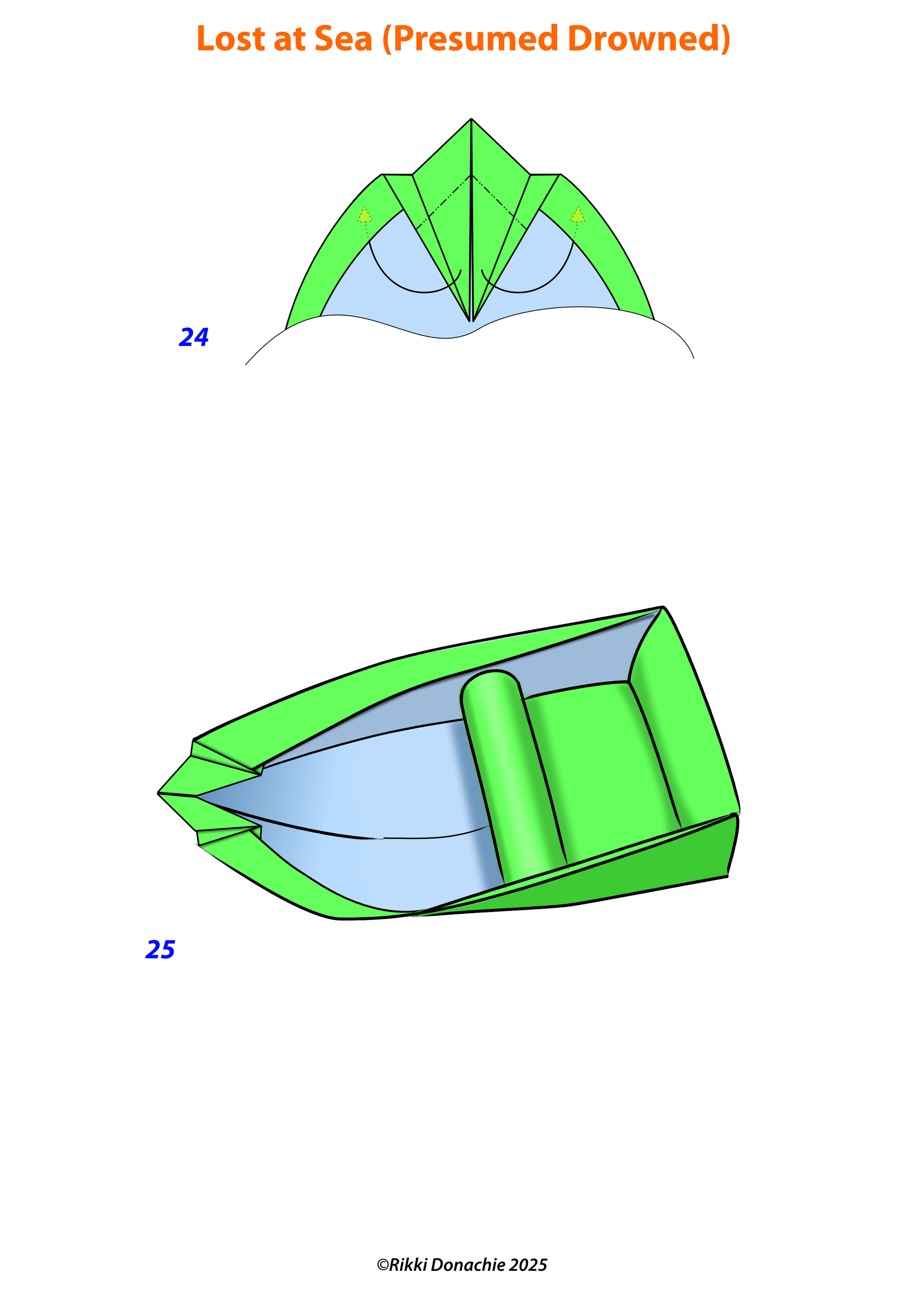 This can be folded from a single A4 or 2 separate sheets if you don't want sea colour on the inside of the boat.